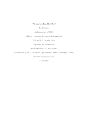 Mulder, Luuk (2025) Wie kan vertellen of het AI is? Bachelor thesis, Psychology.