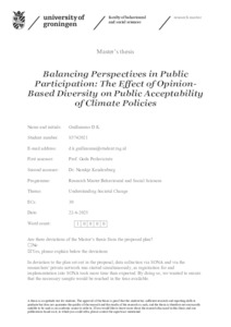 Guilleaume, Dominique (2025) Balancing Perspectives in Public Participation: The Effect of Opinion-Based Diversity on Public Acceptability of Climate Policies. Research Master thesis, Research Master.