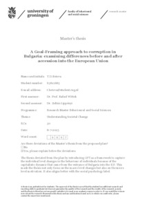 Boteva, Tsveta (2025) A Goal-Framing approach to corruption in Bulgaria: examining differences before and after accession into the European Union. Research Master thesis, Research Master.
