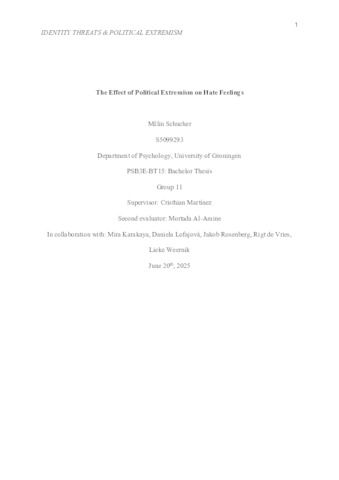 Schucher, Målin Marit (2025) The Effect of Political Extremism on Hate Feelings. Bachelor thesis, Psychology.