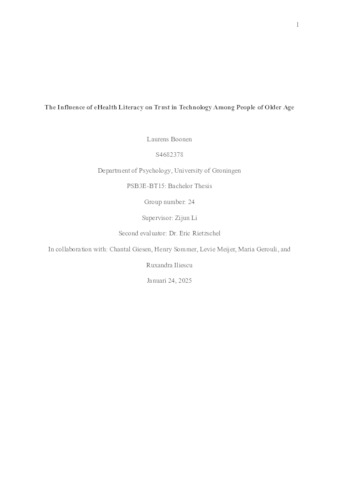 Boonen, Laurens (2025) The Influence of eHealth Literacy on Trust in Technology Among People of Older Age. Bachelor thesis, Psychology.