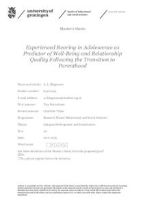 Klugmann, Annika (2025) Experienced Rearing in Adolescence as Predictor of Well-Being and Relationship Quality Following the Transition to Parenthood. Research Master thesis, Research Master.