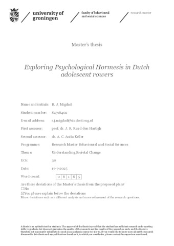 Migdad, Rafid (2025) Exploring Psychological Hormesis in Adolescent Rowers. Research Master thesis, Research Master.
