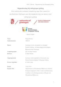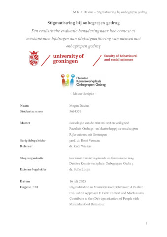 Davina, Megan (2025) Stigmatisering bij onbegrepen gedrag; Een realistische evaluatie benadering naar hoe context en mechanismen bijdragen aan (de)stigmatisering van mensen met onbegrepen gedrag. Master thesis, Sociology.