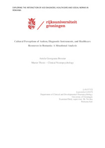 Bosutar, Aniela-Georgeana (2025) Cultural Perceptions of Autism, Diagnostic Instruments, and Healthcare Resources in Romania: A Situational Analysis. Master thesis, Psychology.
