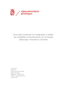 Hoving, Joni (2025) De sociale constructie van doelgroepen in beleid: Een kwalitatieve inhoudsanalyse van de Aanpak Geldzorgen, Armoede en Schulden. Master thesis, Sociology.