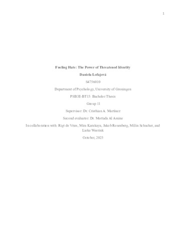 Lofajová, Daniela (2025) Fueling Hate: The Power of Threatened Identity. Bachelor thesis, Psychology.