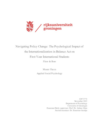 Boer, Floor, de (2025) Navigating Policy Change: The Psychological Impact of the Internationalization in Balance Act on First-Year International Students. Master thesis, Psychology.