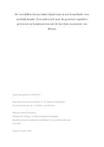 Bosch, Sarah (2025) De verschillen tussen onderwijsniveaus in een lesmethode voor aardrijkskunde: Een onderzoek naar de getoetste cognitieve processen en kennissoorten met de herziene taxonomie van Bloom. Bachelor thesis, Academische Opleiding Leraar Basisonderwijs (AOLB).