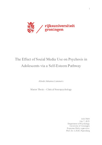 Lammers, Alinde (2025) The Effect of Social Media Use on Psychosis in Adolescents via a Self-Esteem Pathway. Master thesis, Psychology.