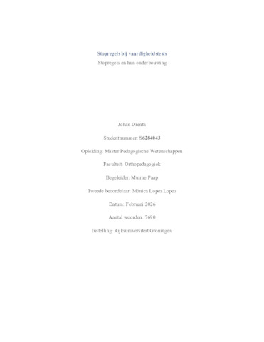 Drenth, Johan (2025) Stopregels bij vaardigheidstests Stopregels en hun onderbouwing. Master thesis, Pedagogical and Educational Sciences.