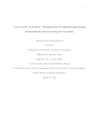 Rietveld, Johanna (2025) “I Love You for You no Matter”: Managing the Parent-Child Relationship Through Relational Identity Claims in Coming-Out Conversations. Bachelor thesis, Psychology.