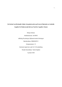 Schuurs, Merijn (2026) De Invloed van Herhaalde Online Groepsinteracties op Ervaren Polarisatie en Gedeelde Cognitie: De Modererende Rol van Need for Cognitive Closure. Bachelor thesis, Psychology.