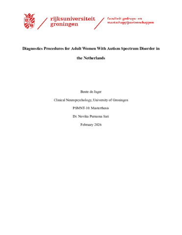 Jager, Bente, de (2026) Diagnostics Procedures for Adult Women With Autism Spectrum Disorder in the Netherlands. Master thesis, Psychology.